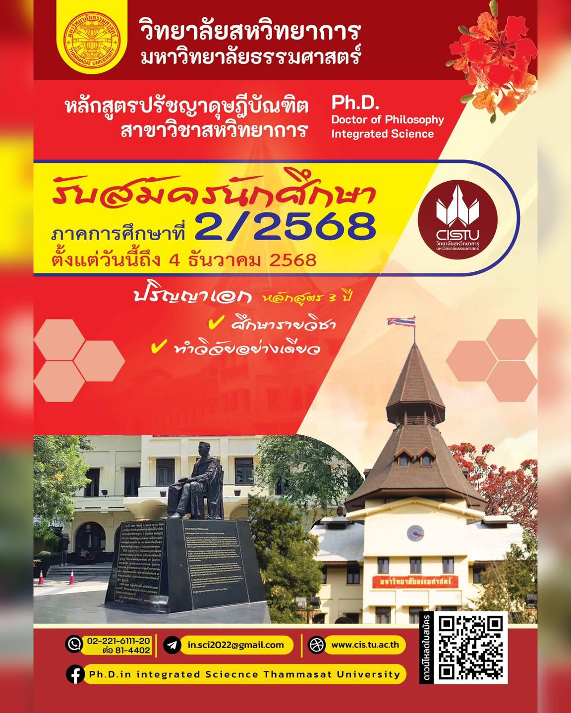 ประกาศมหาวิทยาลัยธรรมศาสตร์ เรื่อง การรับสมัครคัดเลือกบุคคลเข้าศึกษาหลักสูตรปรัชญาดุษฎีบัณฑิต สาขาวิชาสหวิทยาการ วิทยาลัยสหวิทยาการ ภาคการศึกษาที่ 2 ปีการศึกษา 2568