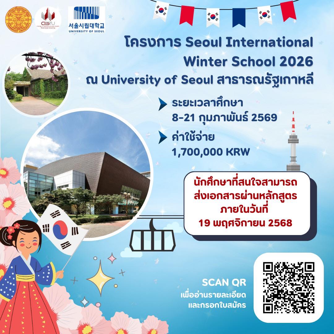 ประกาศรับสมัครนักศึกษาเข้าร่วมโครงการ Seoul International Winter School 2026 ณ University of Seoul สาธารณรัฐเกาหลี