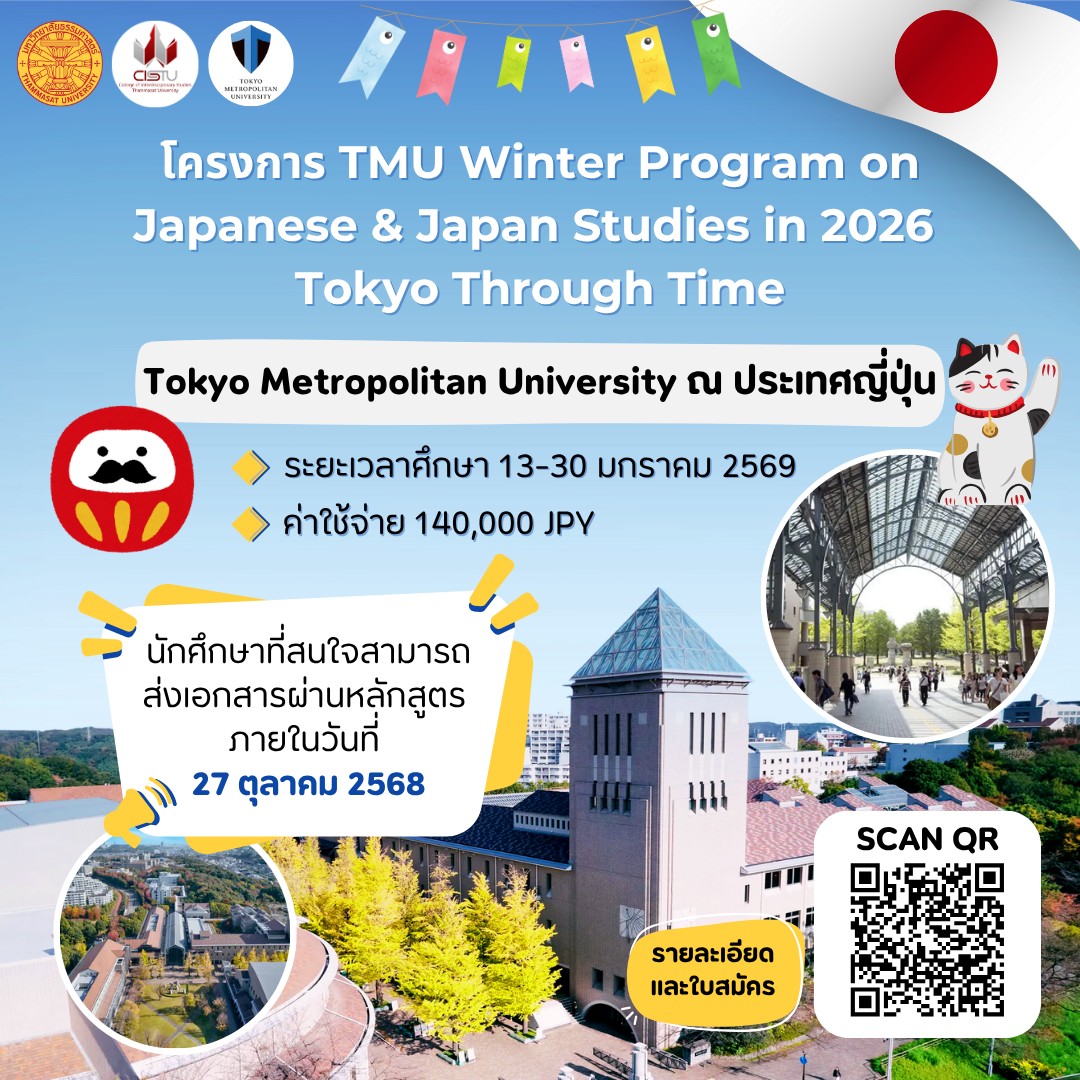 ประกาศรับสมัครนักศึกษาเข้าร่วมโครงการ TMU Winter Program on Japanese & Japan Studies in 2026 - Tokyo Through Time ณ Tokyo Metropolitan University ประเทศญี่ปุ่น