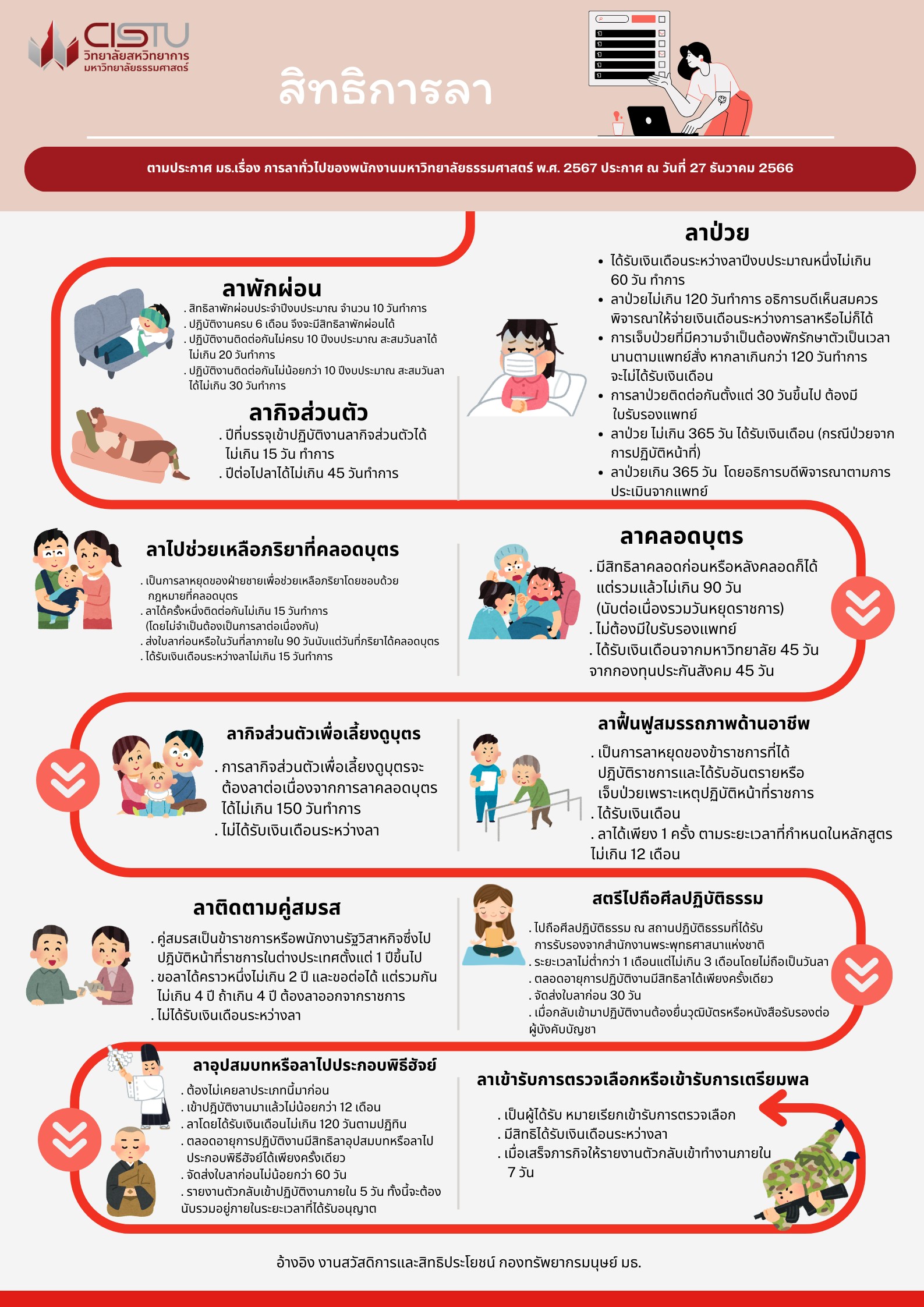 ประกาศมหาวิทยาลัยธรรมศาสตร์ เรื่อง การลาทั่วไปของพนักงานมหาวิทยาลัยธรรมศาสตร์ พ.ศ.2567