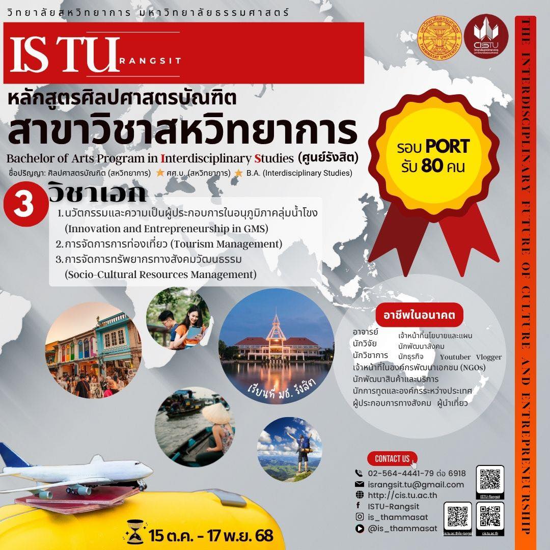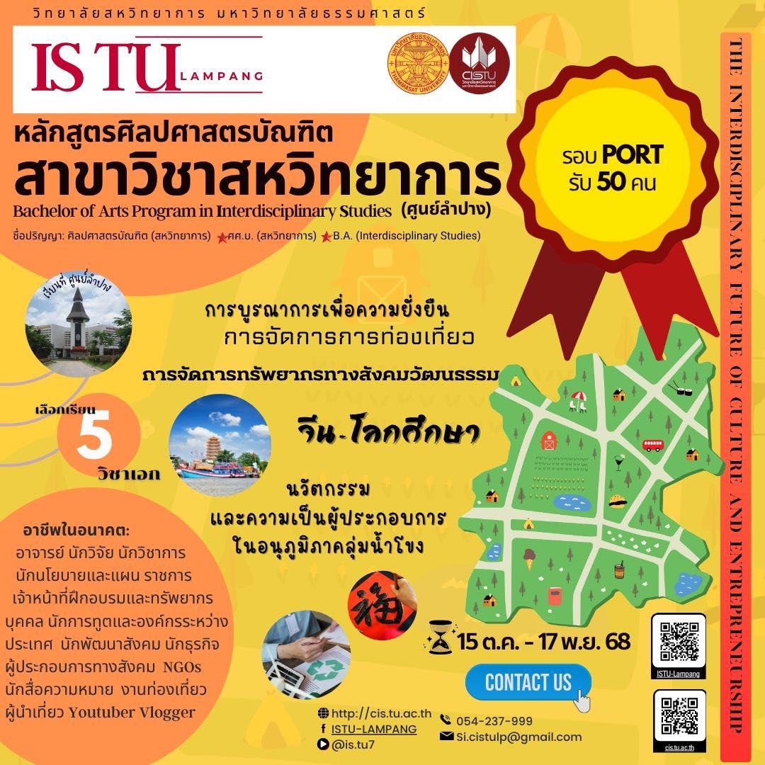 (15/10/68) ประกาศรับสมัครนักศึกษาใหม่ รอบที่ 1 Portfolio ปีการศึกษา 2569 หลักสูตรศิลปศาสตรบัณฑิต สาขาวิชาสหวิทยาการ (หลักสูตรปรับปรุง พ.ศ.2566) (หลักสูตรพหุวิทยาการ) ศึกษาที่ มธ.ศูนย์ลำปาง